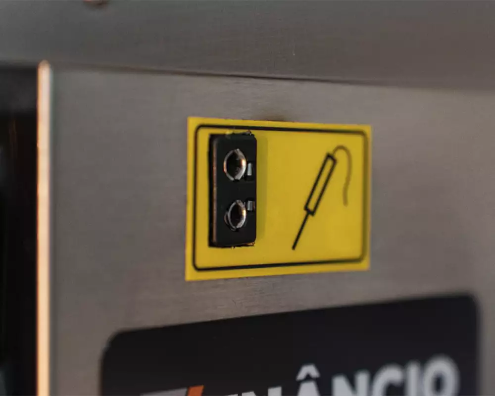 - Acompanha sensor de núcleo que tem como função determinar o ponto de cozimento (mal passado, bem passado ou ao ponto), pois irá efetuar a medição através de uma sonda inserida no interior do alimento;